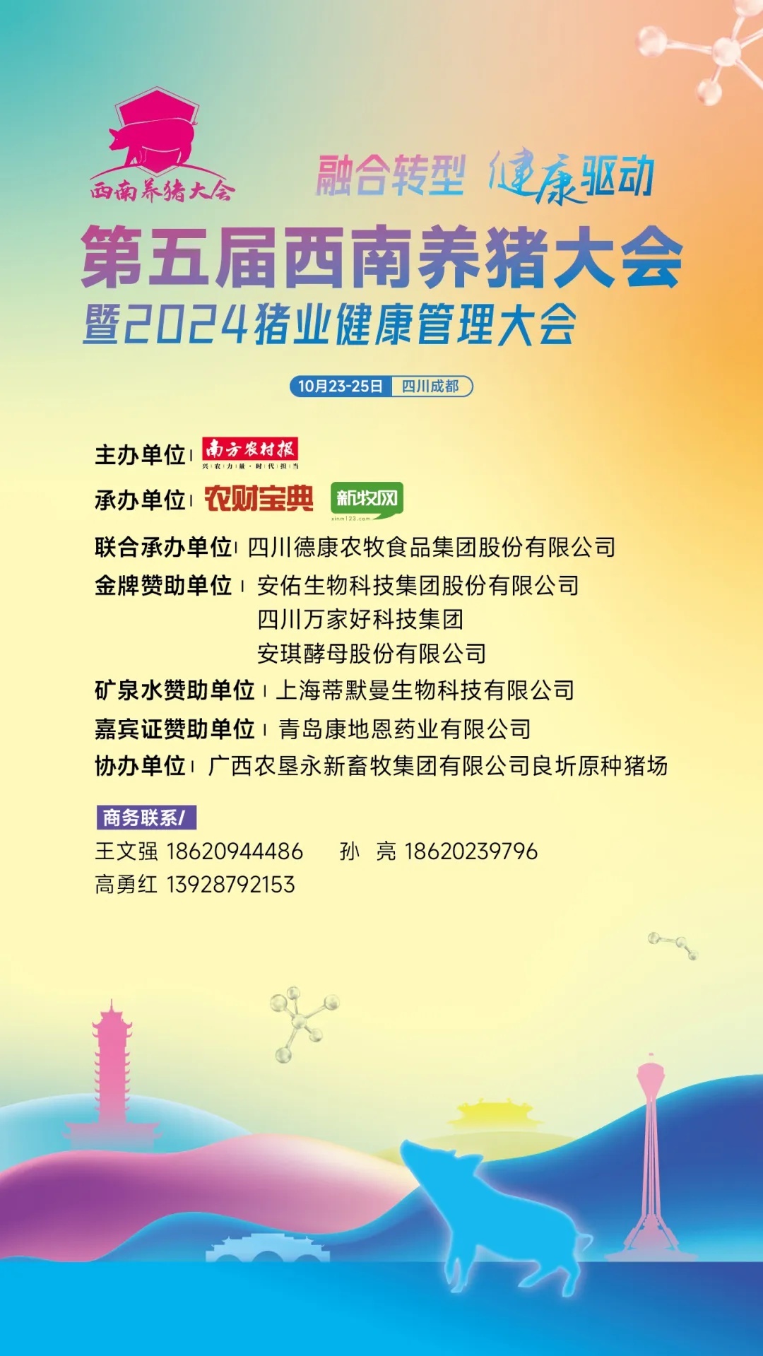 为搭建一个高层次、专业化的交流平台,历年来,西南养猪大会已在重庆、云南等区域举办过多届,猪业健康管理大会往年也在长沙等省区成功开展过,两场大会吸引了共超过2千多位行业精英参与,鉴于2024李曼养猪大会定于四川成都举办,作为会前会,经西南养猪大会和猪业健康管理大会组委会决定,2024年我们将这两场大会融合一体,成为第五届西南养猪大会暨2024猪业健康管理大会,并将于10月23-25日在四川成都举办。